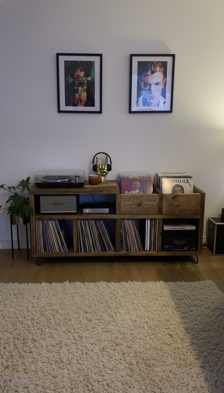 Perfect for audiophiles and collectors, the Falknor offers ample storage, smooth accessibility, and refined craftsmanship — a centerpiece for any listening space.