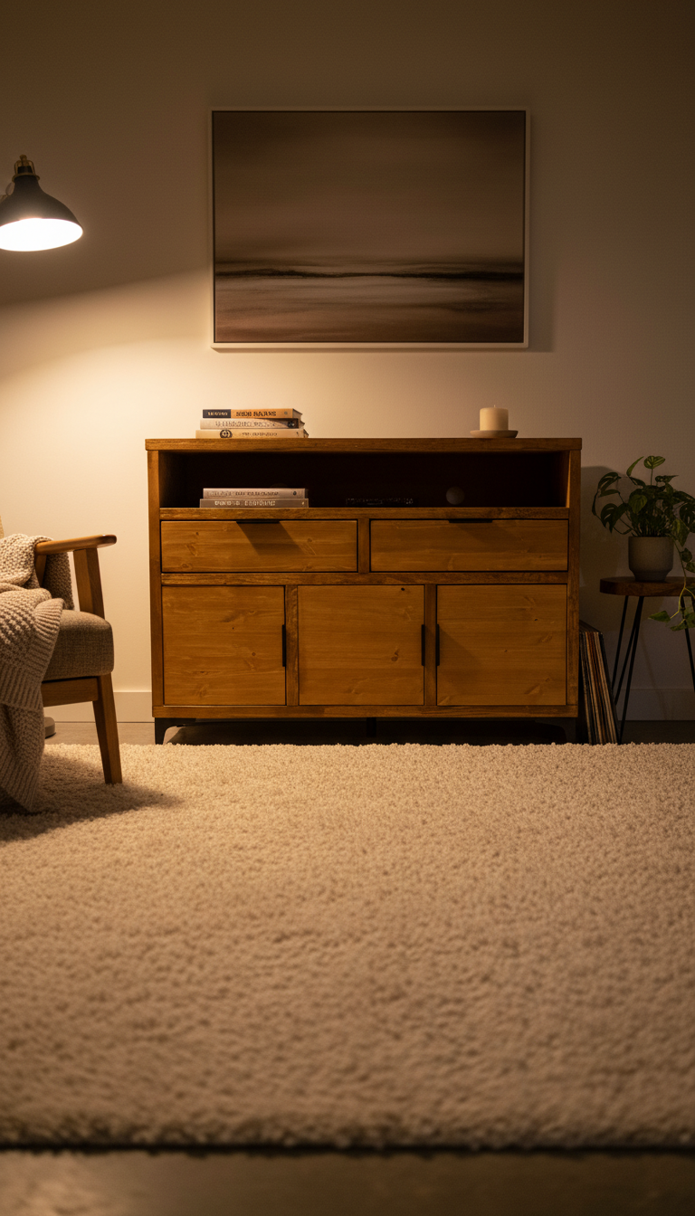 Compact yet highly practical, the Kartner combines refined craftsmanship with accessible storage, making it an ideal centrepiece for vinyl lovers and hi-fi enthusiasts.